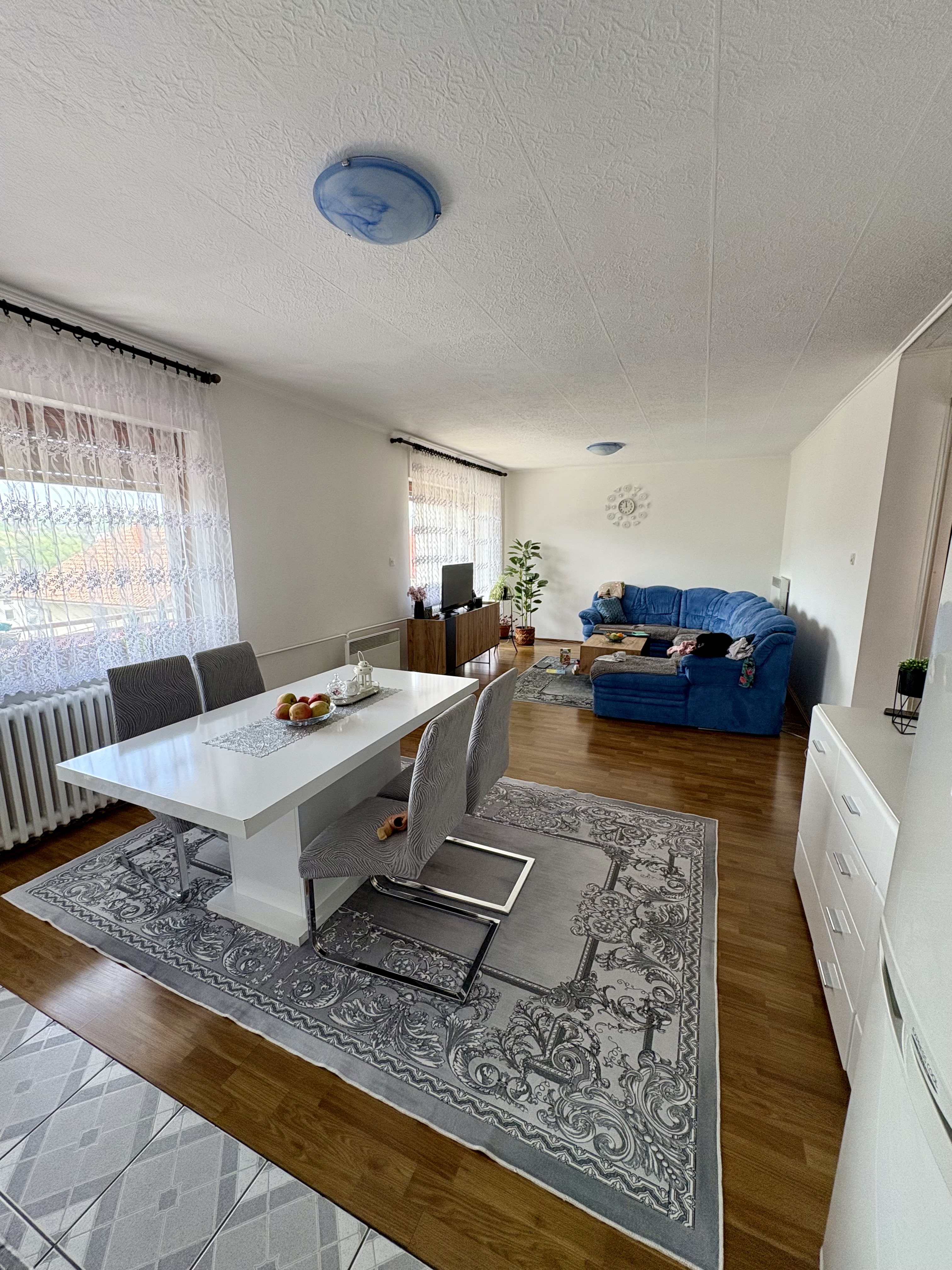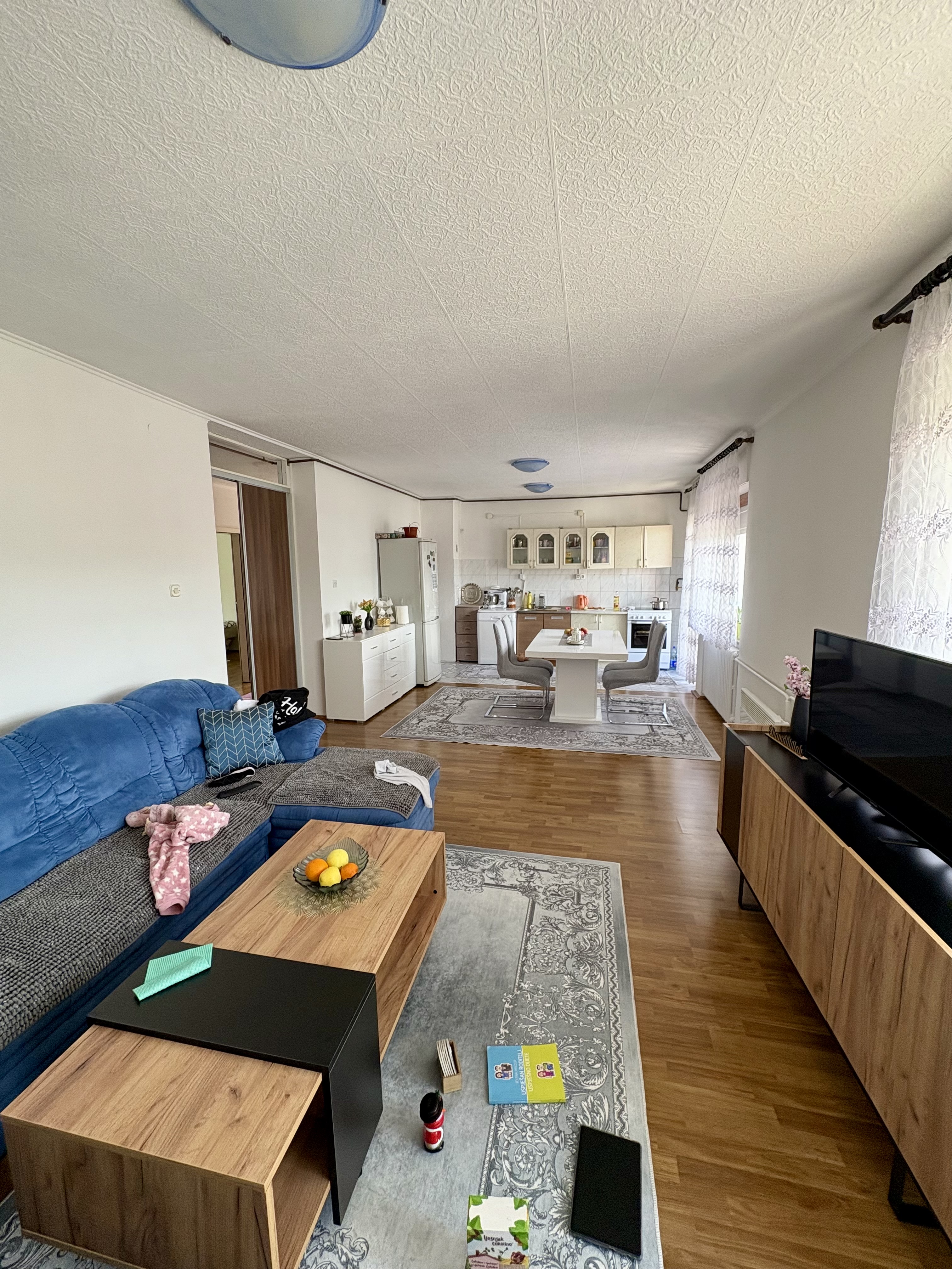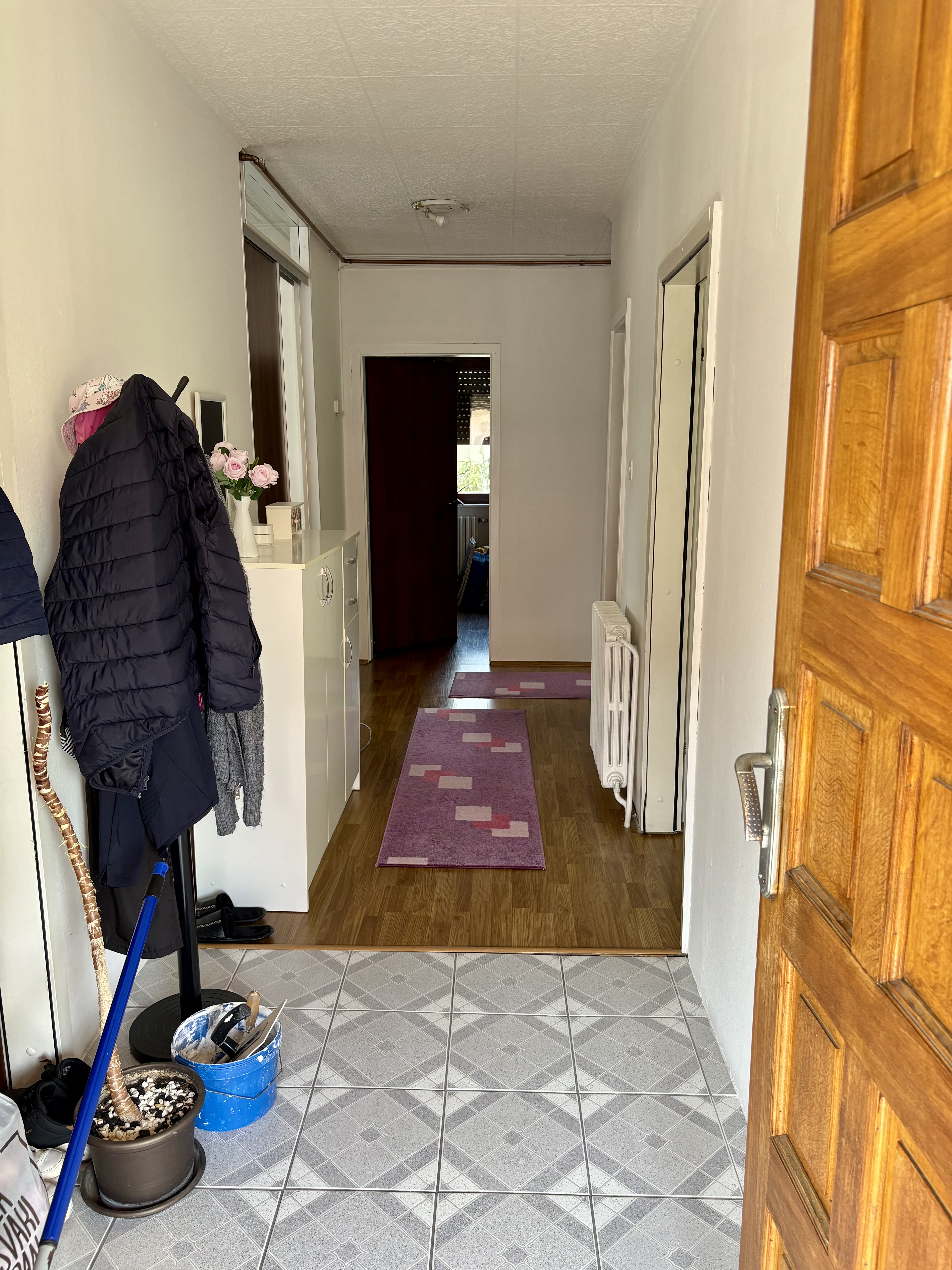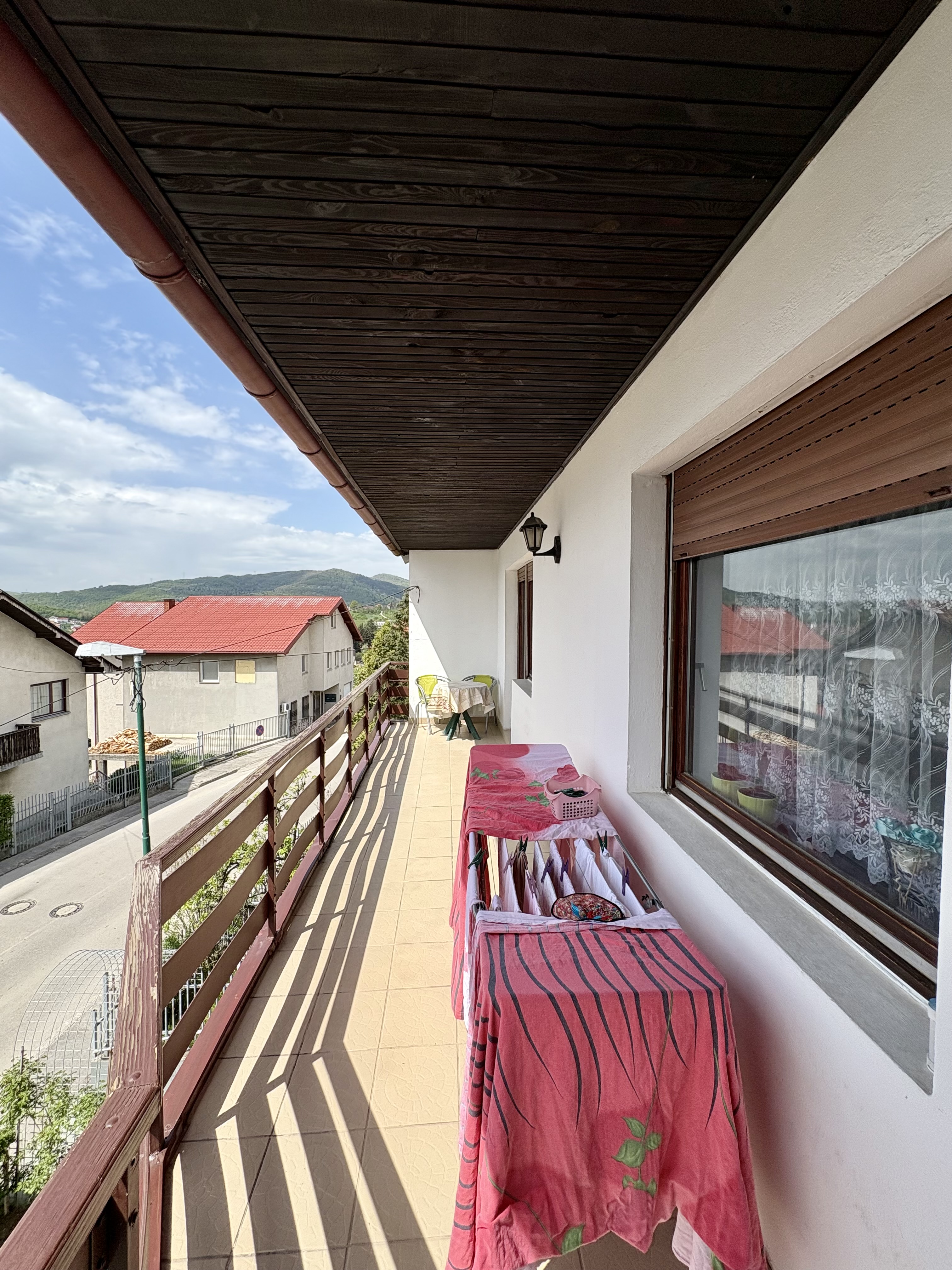 Na spratu etaži su dnevnog boravka sa kuhinjom, tri spavaće sobe, kupatilo, WC i balkon. sa vlastitim ulazom povezane sa stepensitem sa glavne ulice.